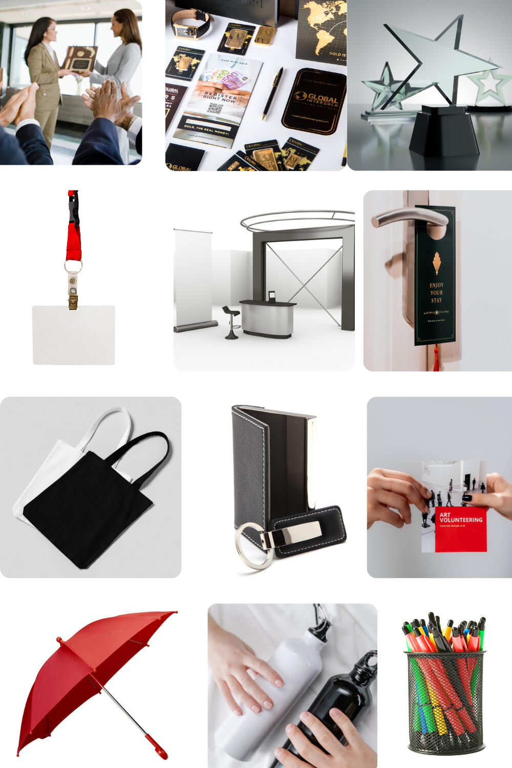 Pull out all the stops and blow them away with our hand selected curations of trade show and event items that are guaranteed to have all eyes on you!Such as, Apparel, Awards, Bags, Back Wall Displays, Banners, Brochures, Business Cards, Corporate Gifts, Door Hangers, Drinkware, Flyers, Flags, Gadgets, Keychains, Notepads, Pens, Retractable Signs, Table Throws, Tents, Trade Show Giveaways, Yard Signs, & Much More.You can contact me by clicking on the email icon below!